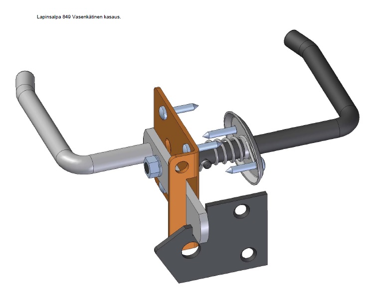 Materiaali: ruostumaton teräs. Painikesalpa oviin ja portteihin, toimii sekä vasen-, että oikeakätisissä ovissa. Lukittavissa riippulukolla, varustettu molemminpuolisilla painikkeilla. Sinkitty, keltapassivoitua terästä.